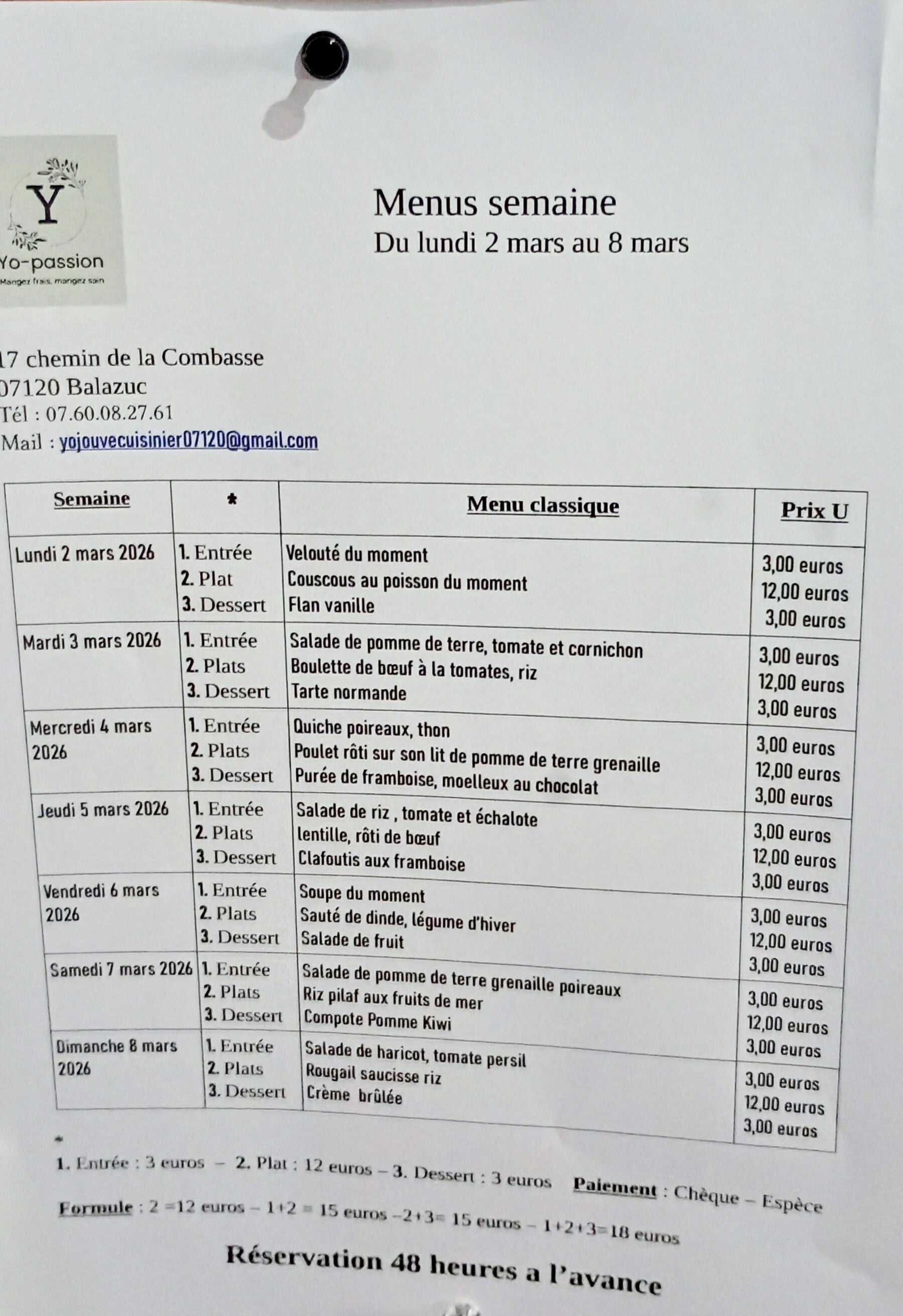 👉 Entrée + Plat + Dessert : (voir tarif conseillé ci-dessous)